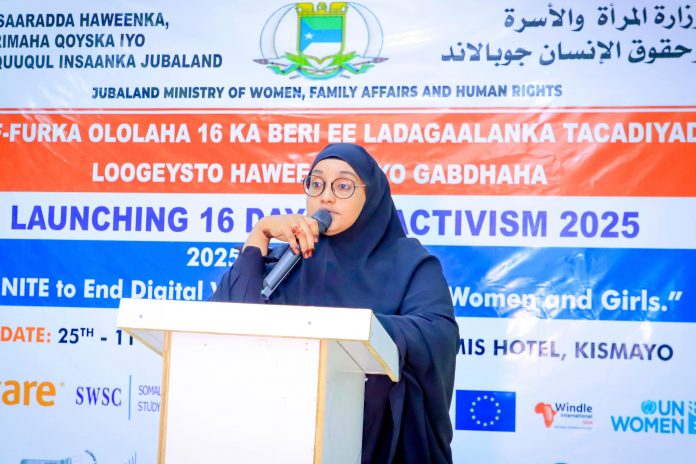 The Ministry of Women, Family Affairs, and Human Rights of the Jubbaland government has officially launched the 16 Days of Activism Against Gender-Based Violence campaign today in Kismayo. The initiative aims to combat violence against women, children, and other vulnerable groups.