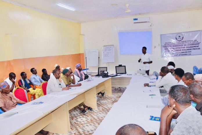 Wasaaradda Arrimaha Gudaha, Federaalka iyo Dib-u-heshiisiinta Dowladda Jubbaland ayaa degmada Doolow ee Gobolka Gedo ku qabatay tababar muhiim ah oo diiradda lagu saarayay Xirfadaha Hoggaamineed ee Ka-Qaybgalka nidaamka dowlad-wanaaga iyo Hannaanka Wada-hadalka loo dhan yahay.
